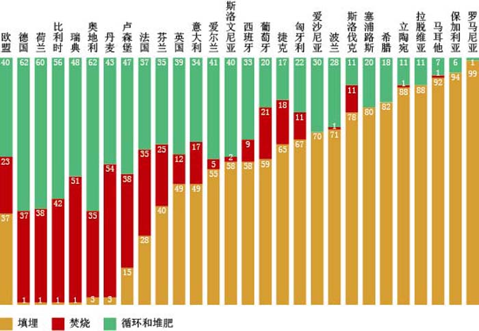 2011年歐盟27國城市垃圾處理方法比較 來源:歐洲統(tǒng)計(jì)局